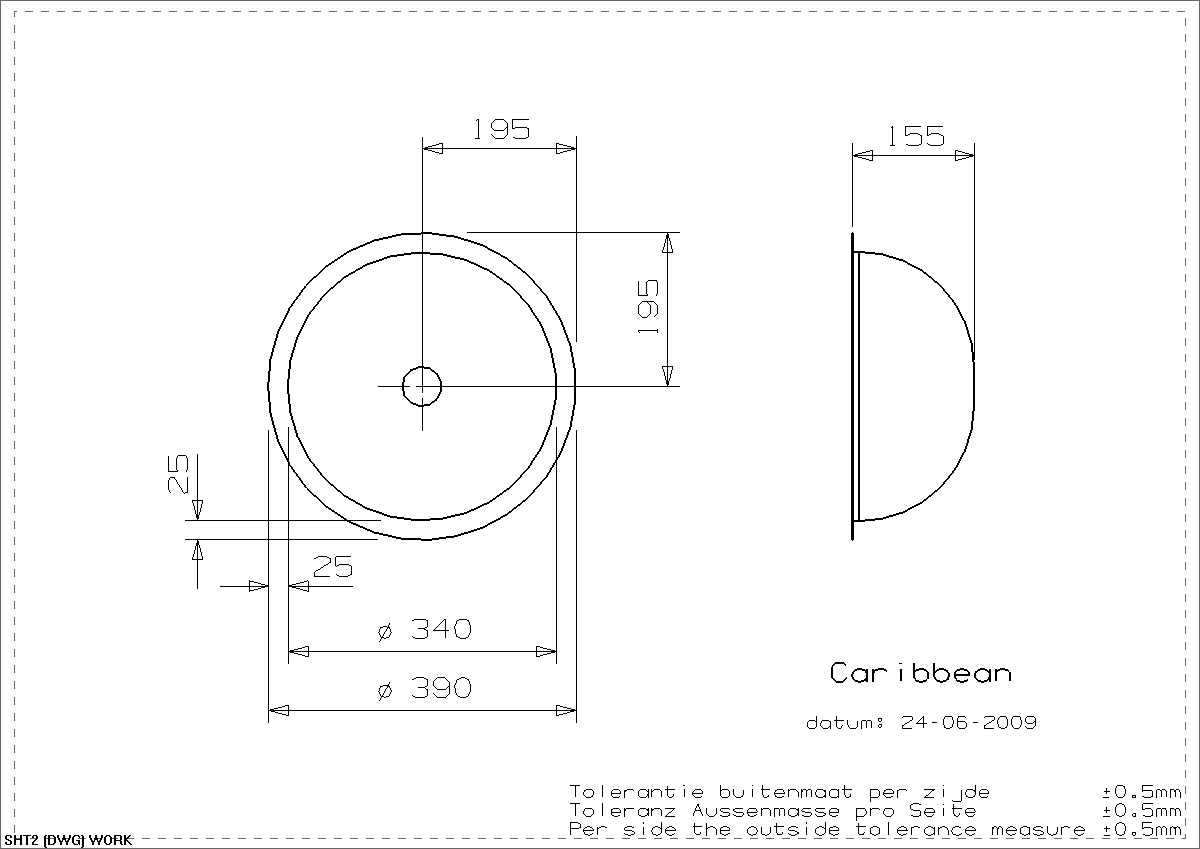 Reginox Caribbean умывальник для ванной комнаты, из нержавеющей стали, интегрированная модель, гладкая, зеркальная полировка. Подходит для шкафа шириной 400 мм. Сливное отверстие ?1,5"" (OSP), перелив в чаше. Без отверстия под смеситель."