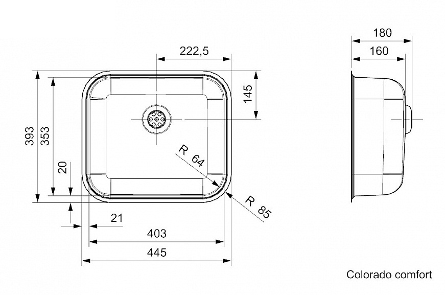 Мойка для кухни врезная Reginox Colorado L Comfort 445x393 LUX OKG (c/box)