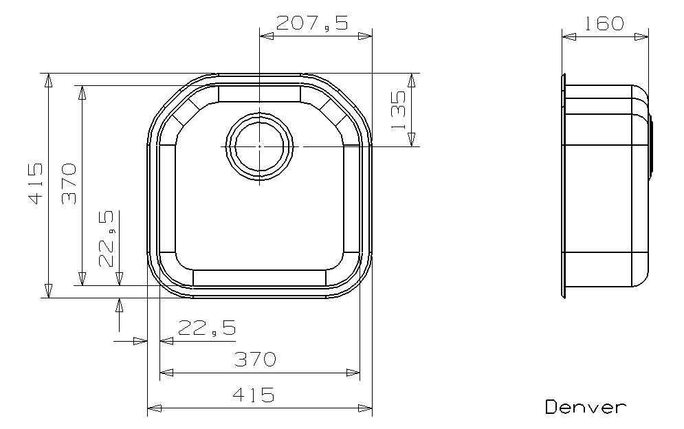 Reginox Denver R врезная мойка из нержавеющей стали. Поверхность полированная. Подходит для шкафа шириной 450 мм. Сливное отверстие ? 3,5"" (OKG), перелив в чаше. Без отверстия под смеситель."