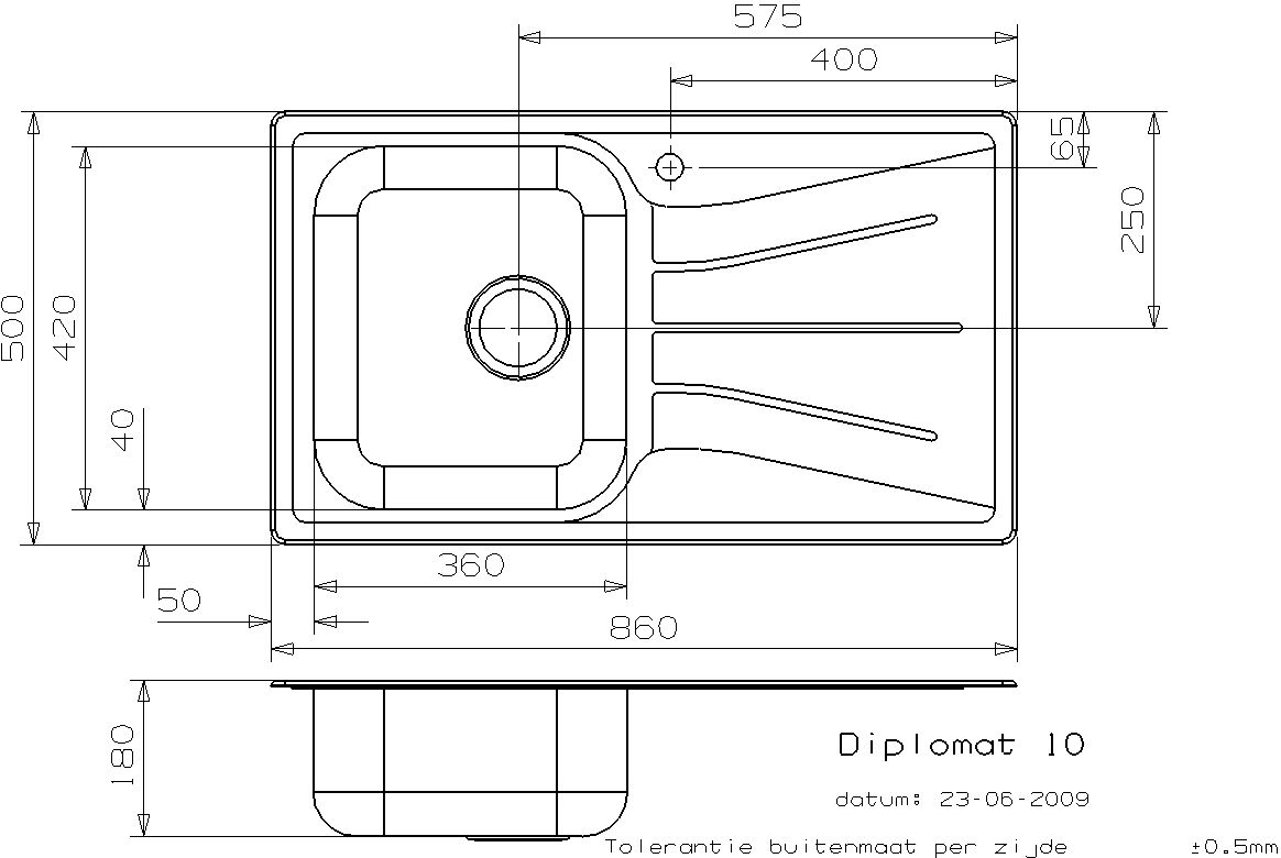 Reginox Diplomat 10 Lux врезная мойка из нержавеющей стали. Поверхность полированная. Подходит для шкафа шириной 400 мм. Без отверстия под смеситель. Сливное отверстие ? 3,5""(OKG), перелив в чаше."