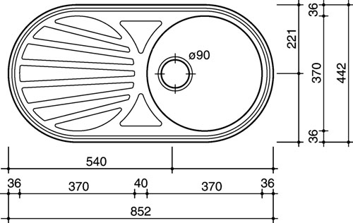 Reginox Galicia Lux OKG врезная мойка из нержавеющей стали. Поверхность полированная. Подходит для шкафа шириной 450 мм. Без отверстия под смеситель. Сливное отверстие ? 3,5"" (OKG), перелив в чаше."
