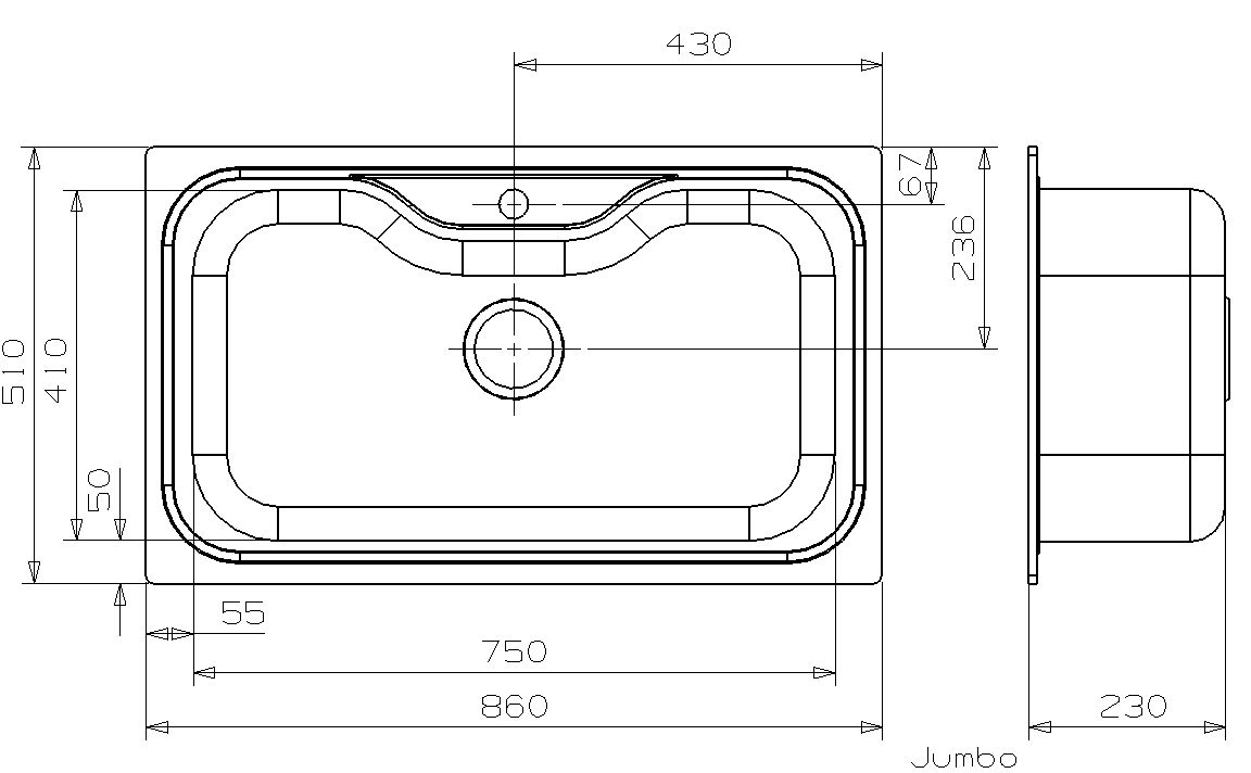 Reginox Jumbo врезная мойка из нержавеющей стали. Поверхность полированная. Подходит для шкафа шириной 800 мм. С отверстием под смеситель. Сливное отверстие ? 3,5""(OKG), перелив в чаше."