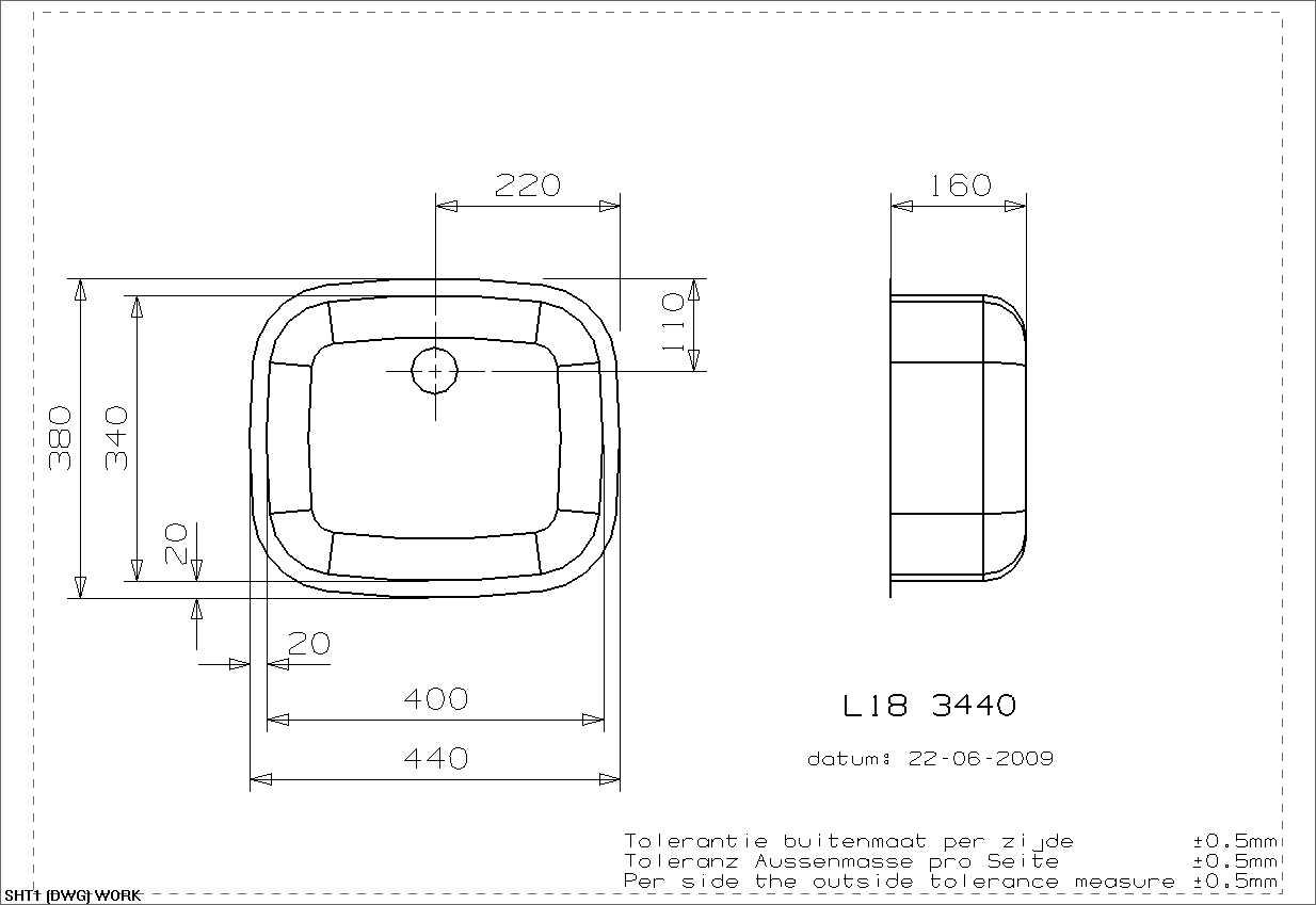 Подходит для шкафа шириной: 450 мм. Сливное отверстие ? 3,5""(OKG) , перелив в чаше. Без отверстия под смеситель."