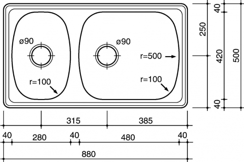 Reginox Vancouver Lux врезная мойка из нержавеющей стали с двумя чашами. Поверхность полированная. Подходит для шкафа шириной: 900 мм. Без отверстия под смеситель. Сливное отверстие ? 3,5""(OKG) , перелив в чаше."
