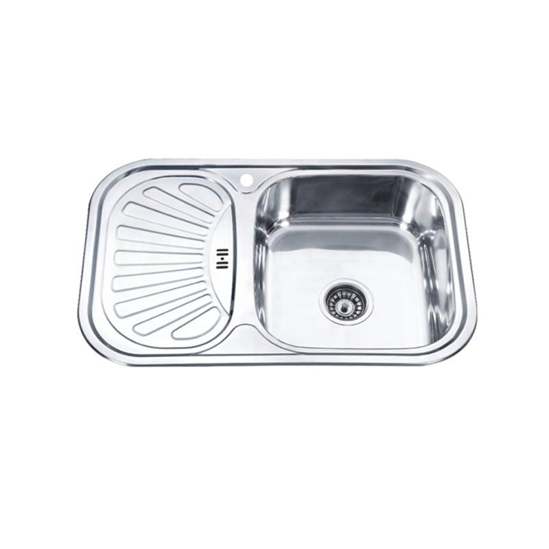 Мойка врезная Ledeme 750x490x180 (0,8мм) выпуск 3 1/2" правая чаша декор (L67549-R)