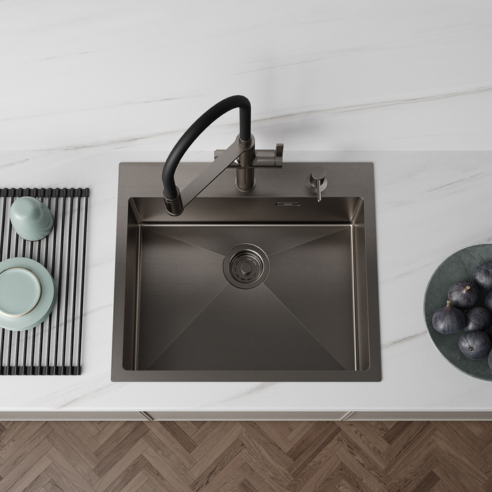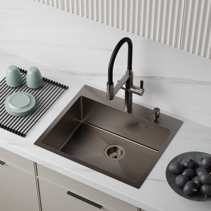 Мойка стальная, цвет - графит, размер: 590x510x200