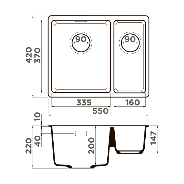 Мойки врезные Omoikiri Kata 55-2-U-WH 42x55 artgranit/белый (4997526)
