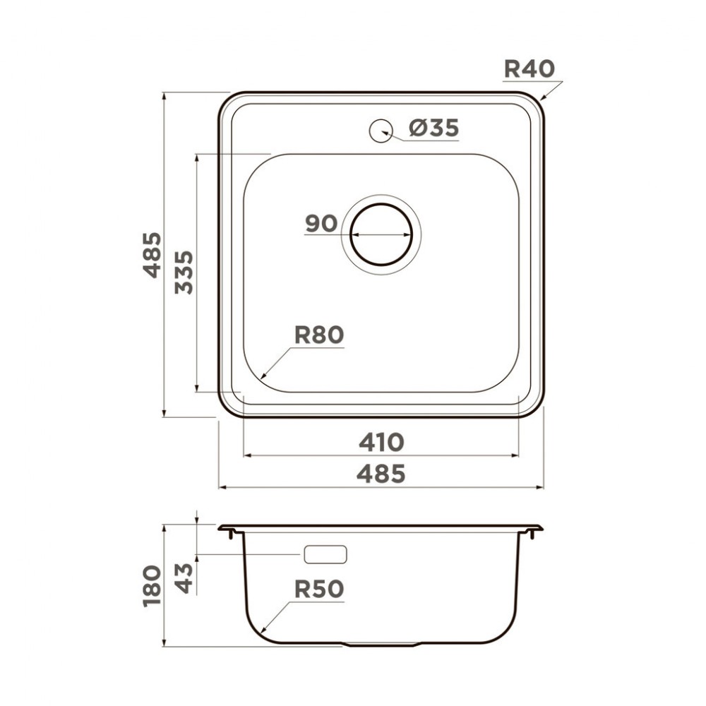 Мойки врезные Omoikiri Notoro 48-IN 48,5x48,5 нержавеющая сталь (4997436)