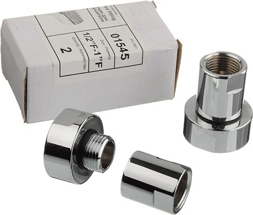 - Соединение переходное, материал хромированная латунь, диаметр перехода 1" на 1/2" (с одного дюйма на пол дюйма).
