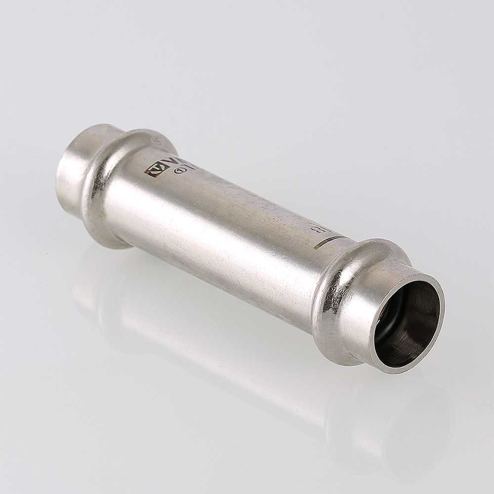 Достоинством бесштуцерных соединителей является малый коэффициент местного сопротивления (сужение канала практически отсутствует). Фитинг рассчитан на обжатие с помощью пресс-инструмента V-профиля.