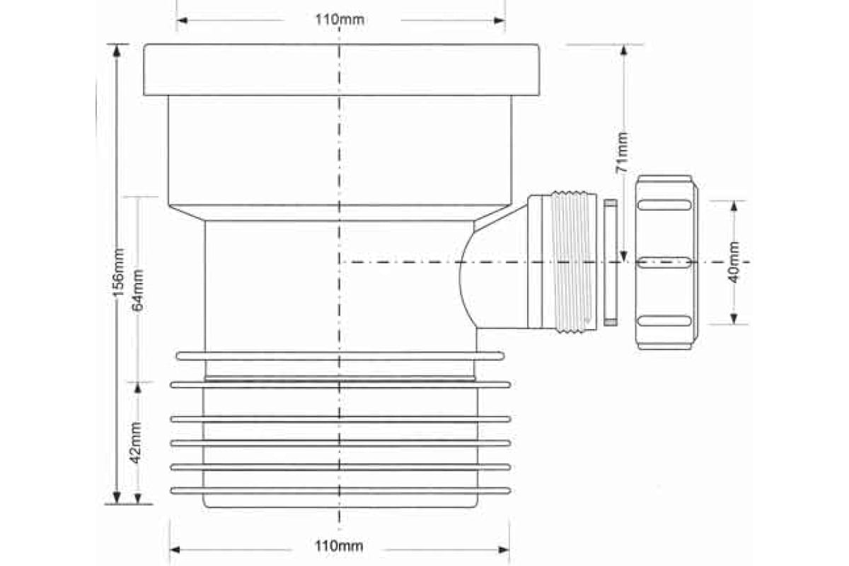 Муфта прямая McAlpine 110 с манжетой и отводом 40 мм L 156 мм (MRDC1D-GR)