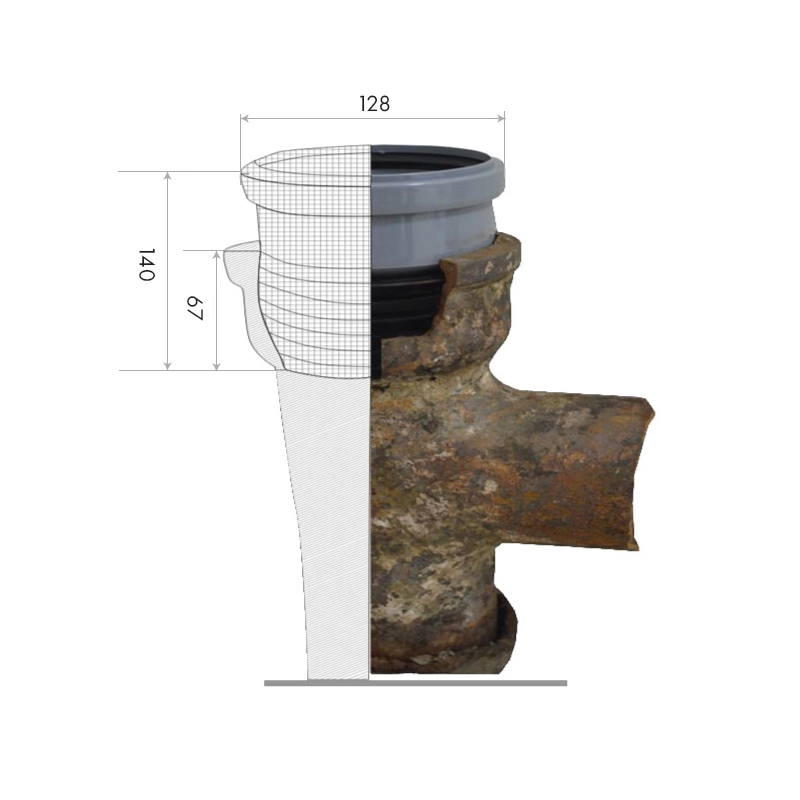 Муфта вставная переходная ремонтная, изготовлена из полипропилена с эластичной манжетой из специальной вулканизированной резины для жесткого и герметичного соединения между трубой в раструб или гладкий конец стальных, чугунных, пластиковых труб.