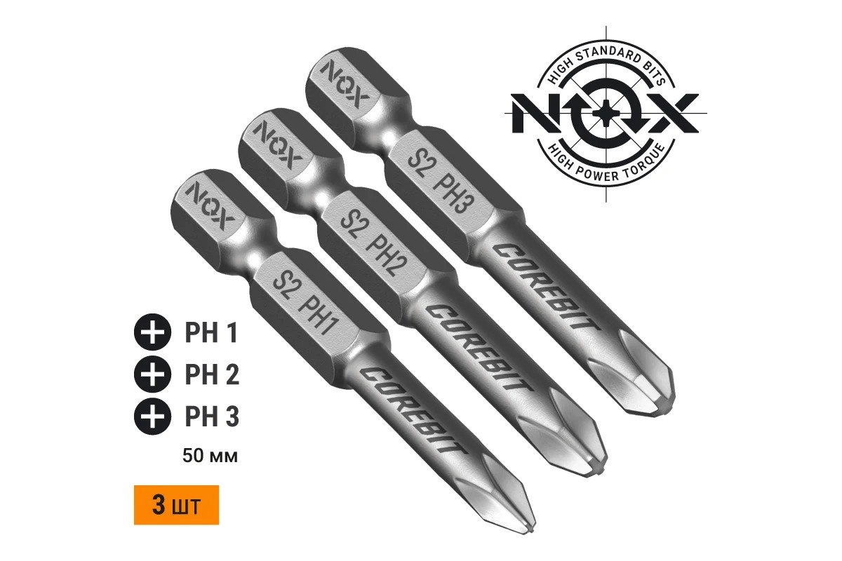 Набор бит Nox SET3 E6,3 Ph1,2,3-50, 3 шт карта COREBIT NOX (336006)