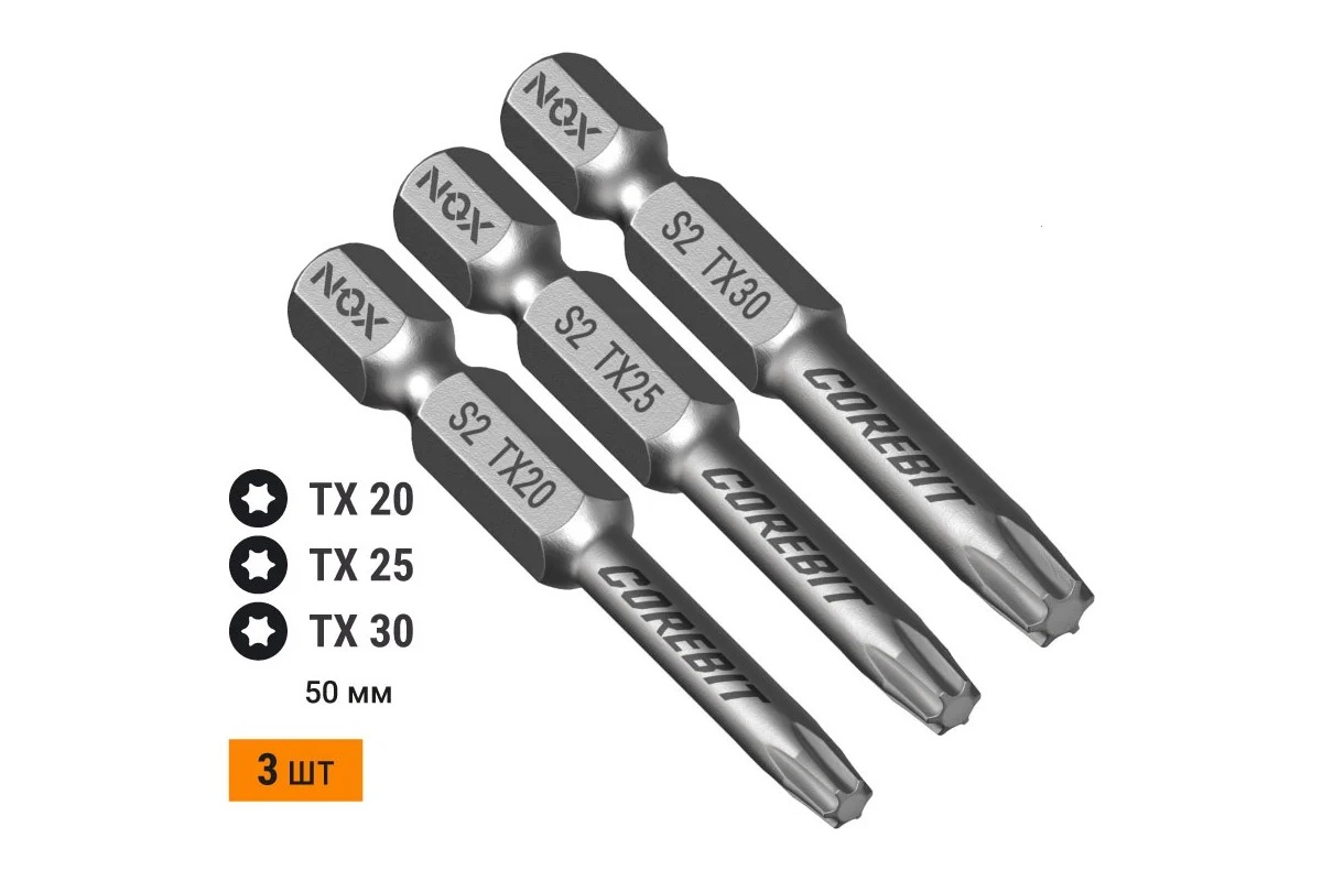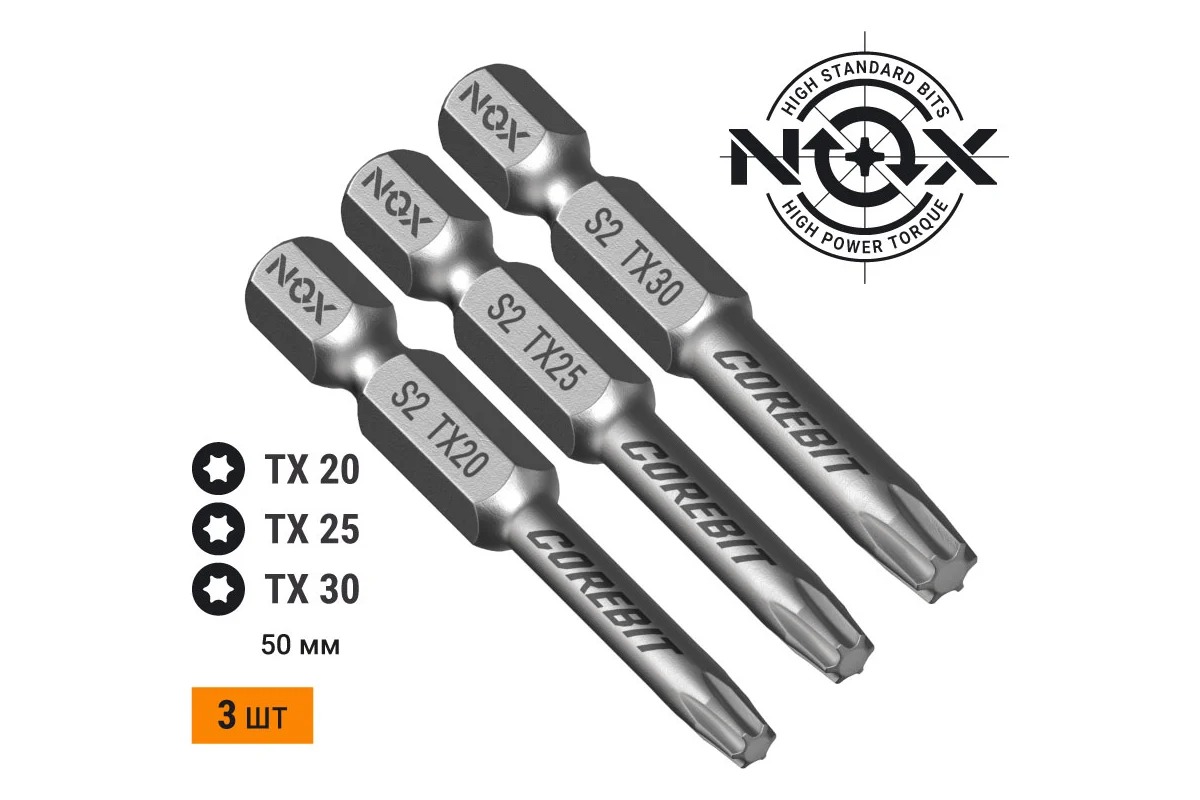 Набор бит Nox SET3 E6,3 Tx20,25,30-50, 3 шт карта COREBIT NOX (336009)
