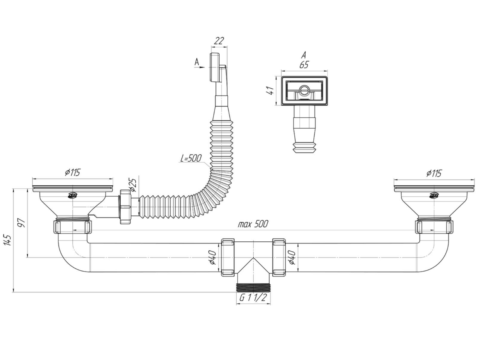 Набор для двойного универсального разноуровнего сифона АНИ без выпуска. АНИ пласт (L0500)