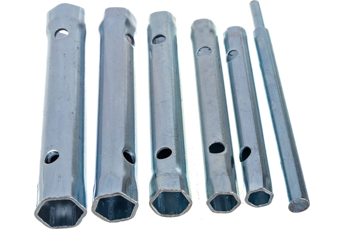 Набор трубчатых свечных ключей FIT 63736 состоит из 6 трубчатых свечных ключей и съёмного рычага. Комплект используется для установки свечей зажигания в автомобилях. Все изделия выполнены из термообработанной инструментальной стали, что гарантирует прочность и износостойкость. Ключи подходят для свечей размерами 6-17 мм.