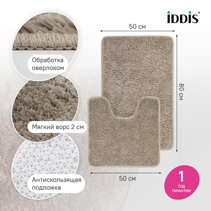 Набор ковриков для ванной комнаты 50х80 + 50х50 микрофибра светло-коричневый Iddis (BSET07Mi13)