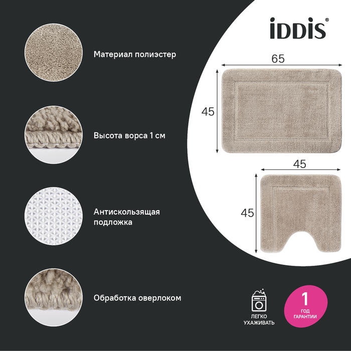 Набор ковриков для ванной комнаты 65х45 + 45х45 микрофибра светло-коричневый Iddis (PSET03Mi13)