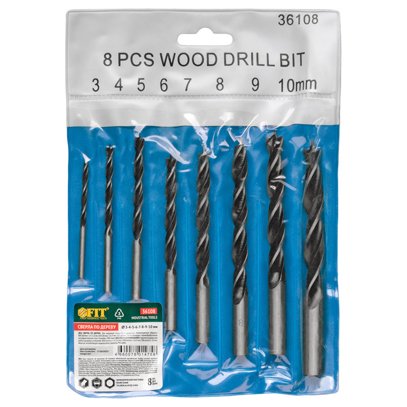 Набор сверл по дереву FIT 3-10 мм /8шт/ (36108)