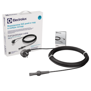 Electrolux EFGPC– комплект нагревательного кабеля для обогрева труб. Для защиты водопроводных и других труб от замерзания. Комплект полностью готов к работе, включает двухжильный нагревательный кабель, сенсор температуры и евровилку.