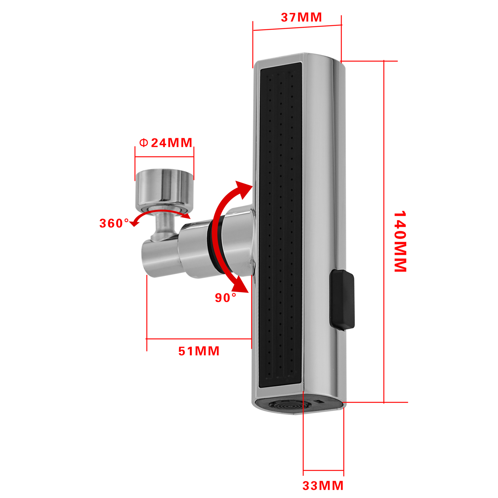 насадка на кухонный смеситель с тремя типами струи, габариты насадки: 140*37*33 мм, подходит для: A54014, A54709, A54909-A, A54009, A54009-A, A57009-B, A54020, A54201, A54001, A54001-1, A54028