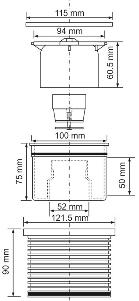 Насадка для трапа McAlpine 110 мм с решеткой 115*115 мм, (сухой затвор) (MRFG3KIT1)