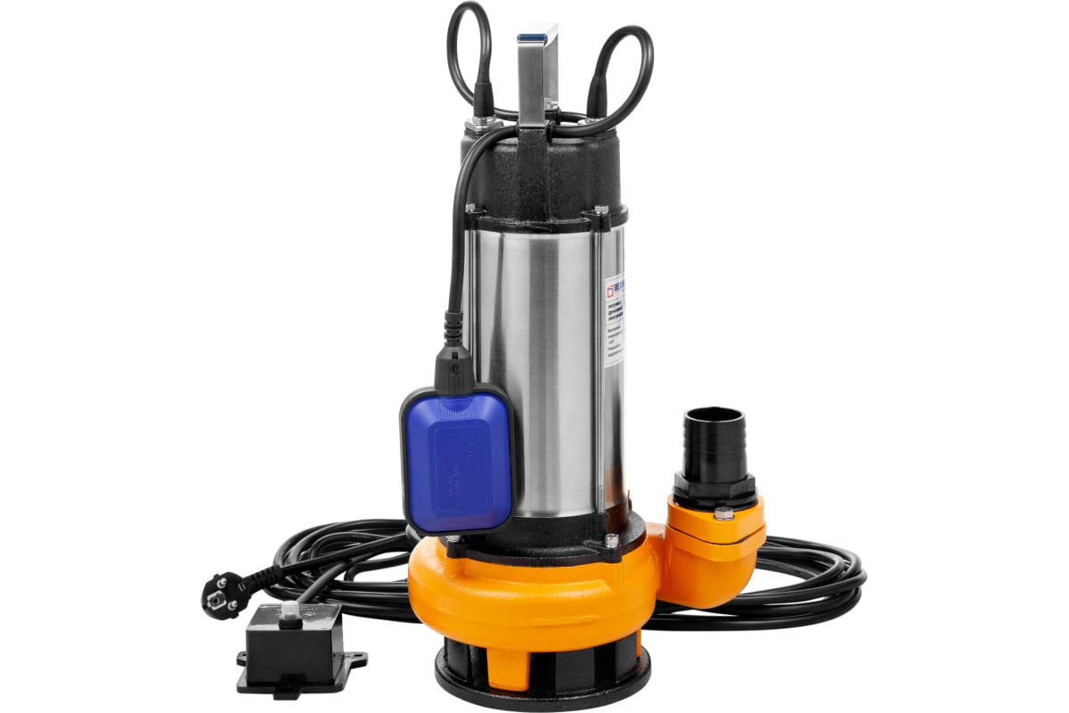 Электродвигатель, мощностью 2300 Вт, защищен от перегрева и перегрузки. Агрегат предназначен для откачивания сильно загрязненной жидкости из затопленных подвалов, сточных канав и других резервуаров. Насос поднимает воду с глубины 5 метров на высоту до 18 метров.