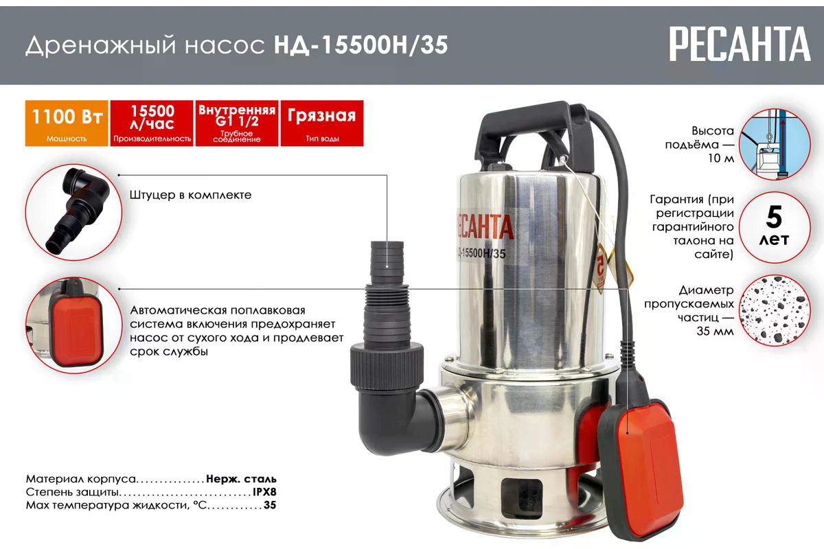 Насос дренажный Ресанта НД-15500Н/35 (77/2/2)
