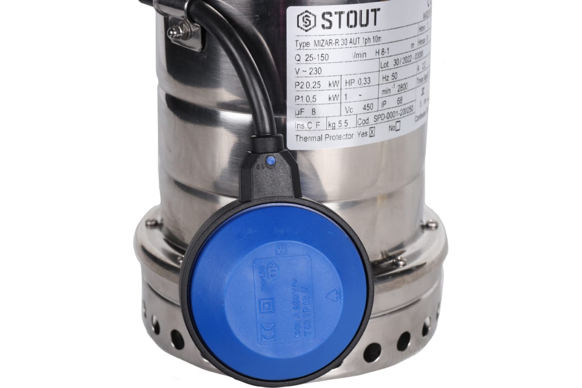 Насос дренажный Stout с поплавком, кабель 10 м, 230V, Q=150 л/мин, H=8 м SPD-0001-200250