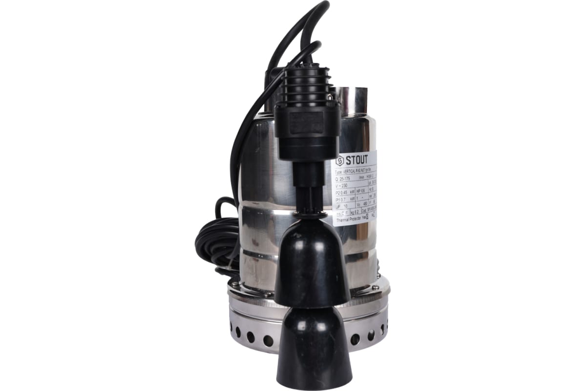 Насос дренажный Stout с вертикальным поплавком, кабель 10 м, 230V, Q=175 л/мин, H=10 м SPD-0003-200450