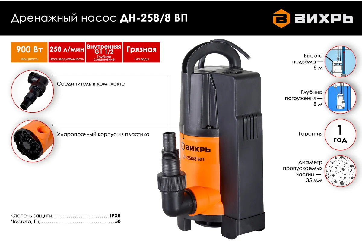 Насос дренажный Вихрь ДН-258/8 ВП