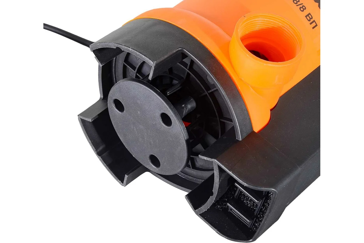 Насос обладает способностью поднимать воду на высоту до 8 метров, что делает его идеальным выбором для применения в глубоких колодцах, шахтах или ямах. Забор воды происходит через нижнюю часть устройства, что обеспечивает возможность работы почти до полного осушения резервуара. Это особенно полезно в ситуациях, когда требуется максимально эффективный водоотвод, например, при ликвидации последствий подтоплений или при обслуживании подземных коммуникаций. Стандартный размер выходного отверстия в 1,5 дюйма позволяет использовать шланги соответствующего диаметра.