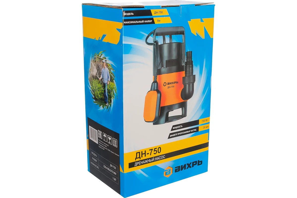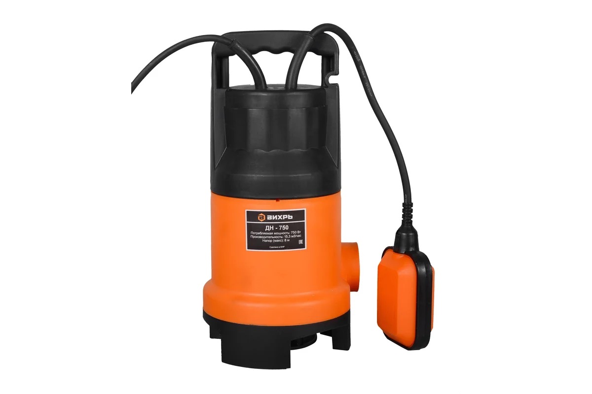 Вихрь ДН-750 — это дренажный насос мощностью 750 Вт для перекачки загрязненной воды из естественных водоемов, оросительных каналов и дренажных колодцев, затопленных жилых помещений и подвалов. Допустимый размер пропускаемых механических частиц - до 35 мм. Использование в воде с более крупными включениями изнашивает рабочие части насоса и может привести к заклиниванию рабочего колеса.