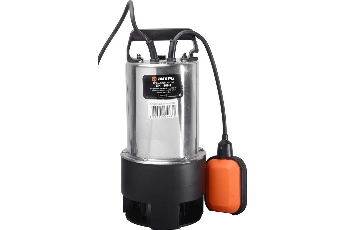 Дренажный насос данной модели имеет нижний забор и успешно работает даже при низком уровне воды. Для изготовления корпуса использована нержавеющая сталь, поэтому прибор устойчив не только к коррозии, но и механическим повреждениям. Размер твердых частиц может достигать 35 мм, насос Вихрь ДН-900H подходит для эксплуатации даже в сложных условиях. Может применяться даже для откачивания воды с достаточно большой глубины, поскольку может поднимать на высоту до 9 м.