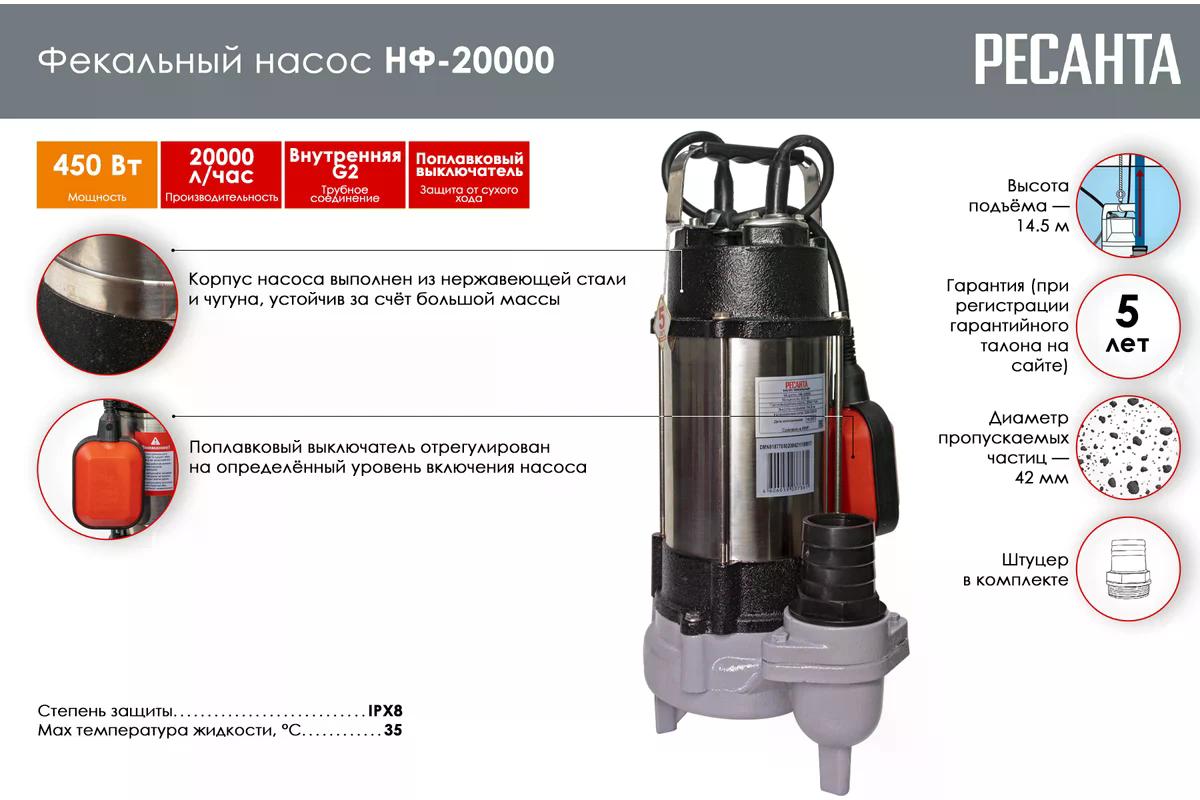 Насос фекальный Ресанта НФ-20000 (77/5/2)
