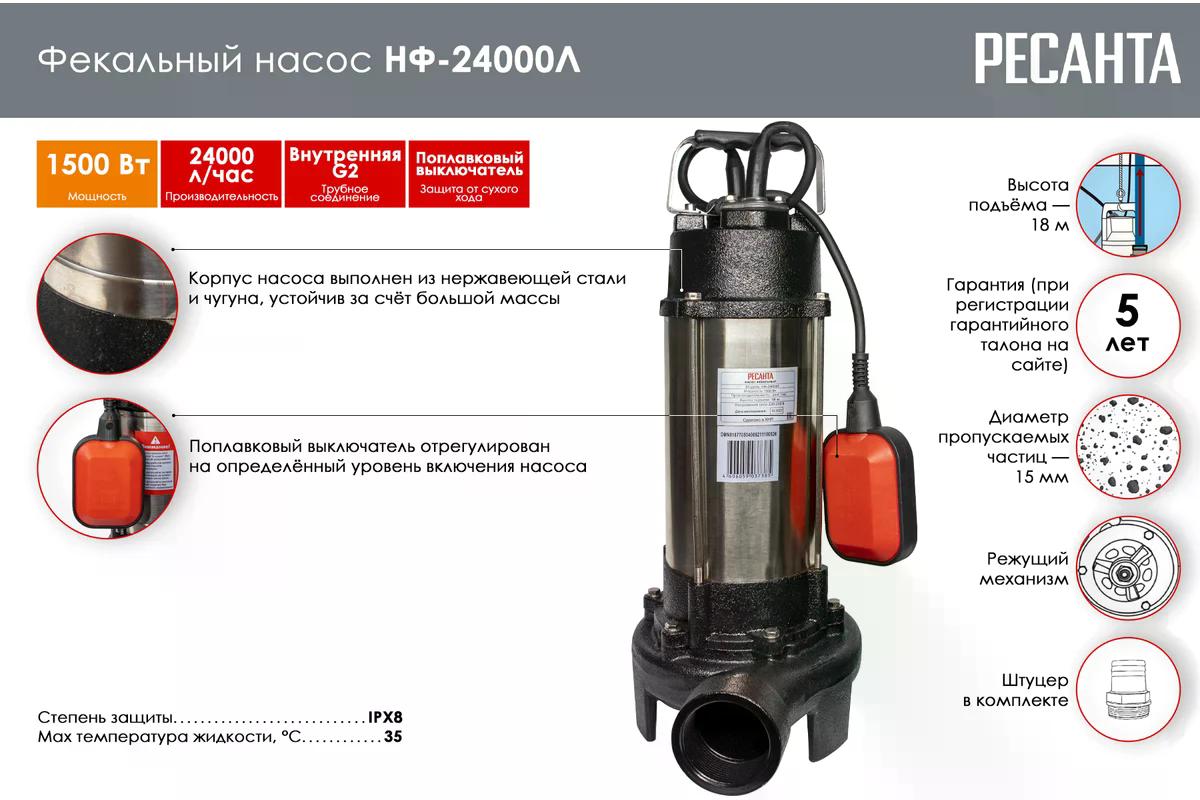 Насос фекальный Ресанта НФ-24000Л (77/5/4)
