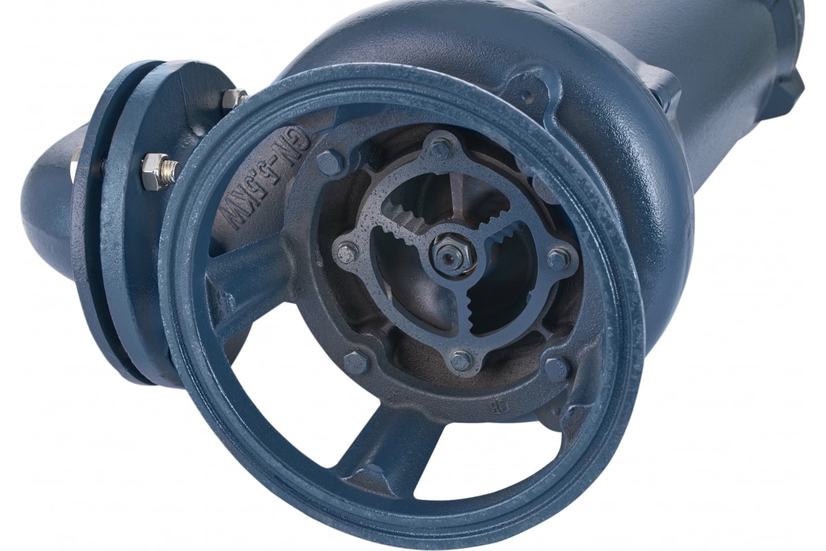 Эта модель фекального насоса оснащена фланцевым присоединением размером 80 мм и обладает рабочей глубиной погружения не более 5 метров. Вместо ручки насоса установлены 2 рым-болта, что обеспечивает удобство в установке и креплении насоса.