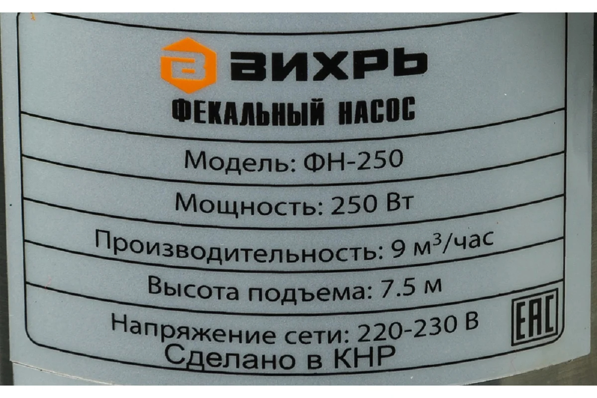 Насос фекальный Вихрь ФН-250 (68/5/1)
