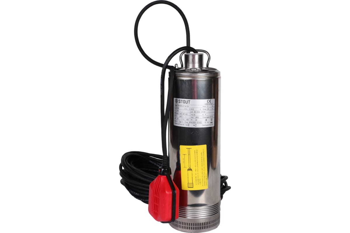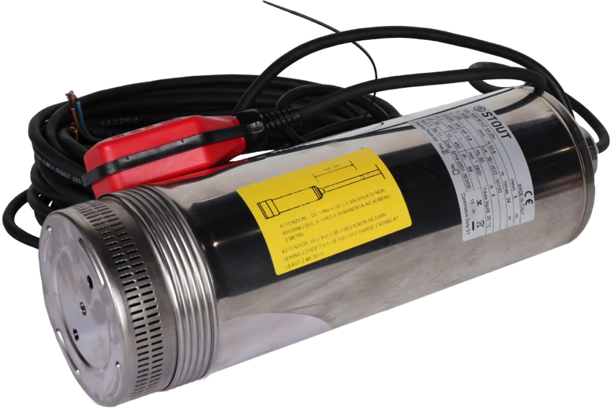 Насос колодезный Stout с поплавком, кабель 20 м, 230V, Q=90 л/мин, H=34 м SPW-0001-200600