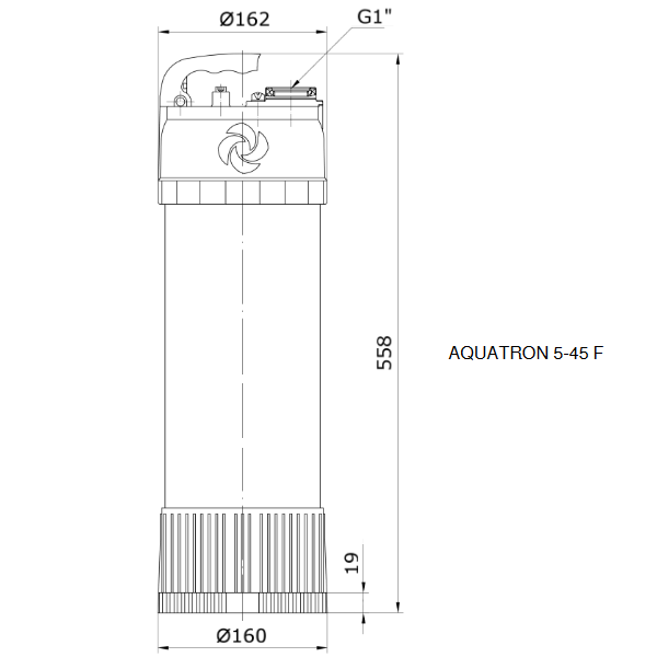 Vandjord AQUATRON 5-45 F (арт.72211002) - погружной колодезный автоматический насос мощностью 1390 Вт, с максимальным напором до 47 м, производительностью до 7,4 куб.м/час и встроенной электроникой для автоматического включения и выключения.
