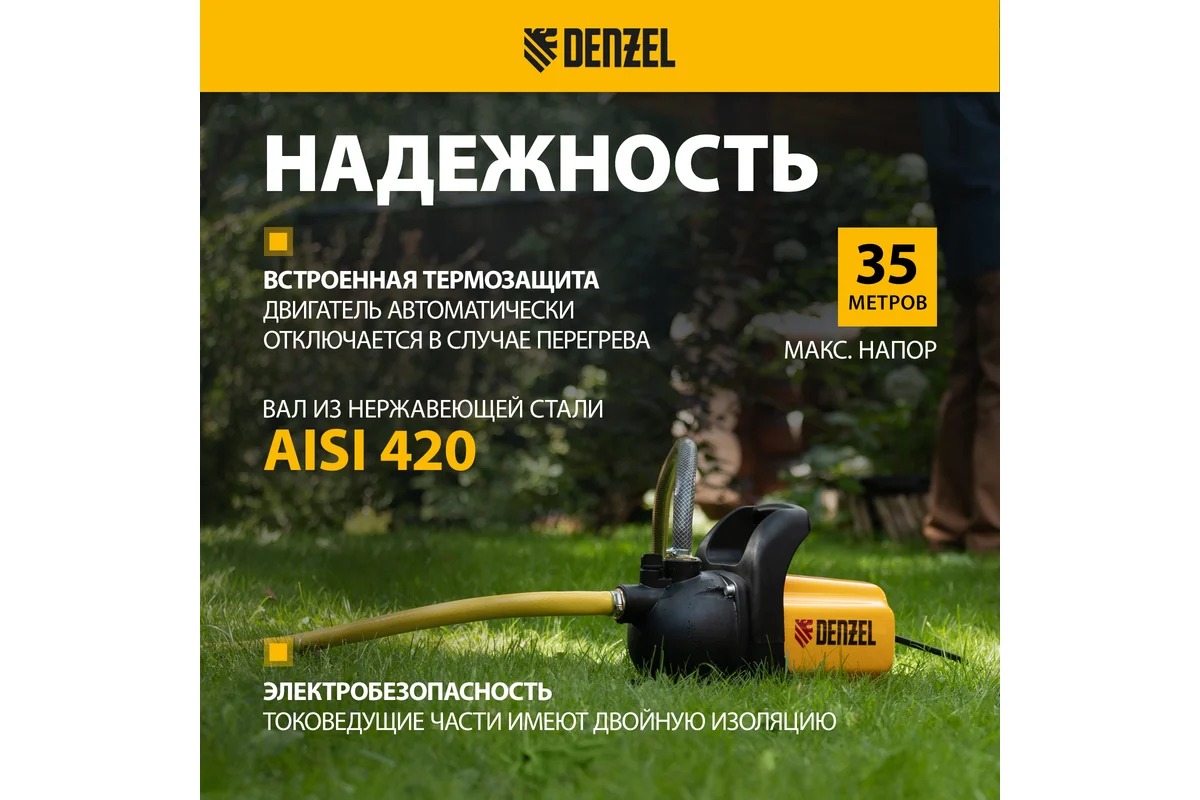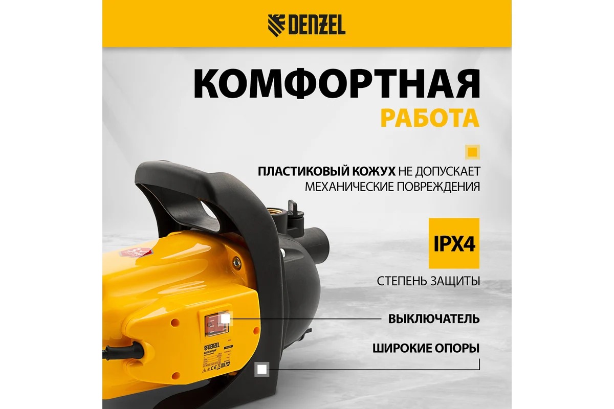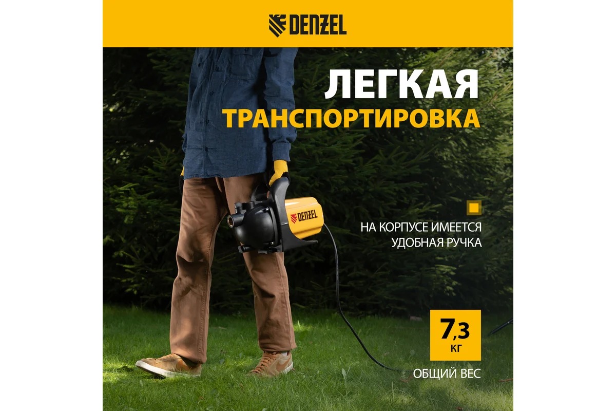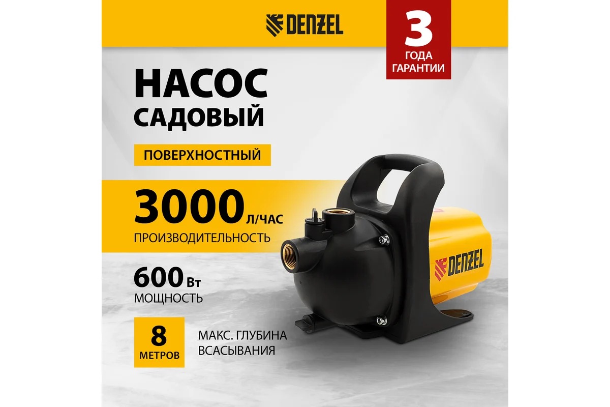 Насос поверхностный Denzel GP600 600 Вт, 3000 л/ч, высота подъема 35 м, пластик (97201)