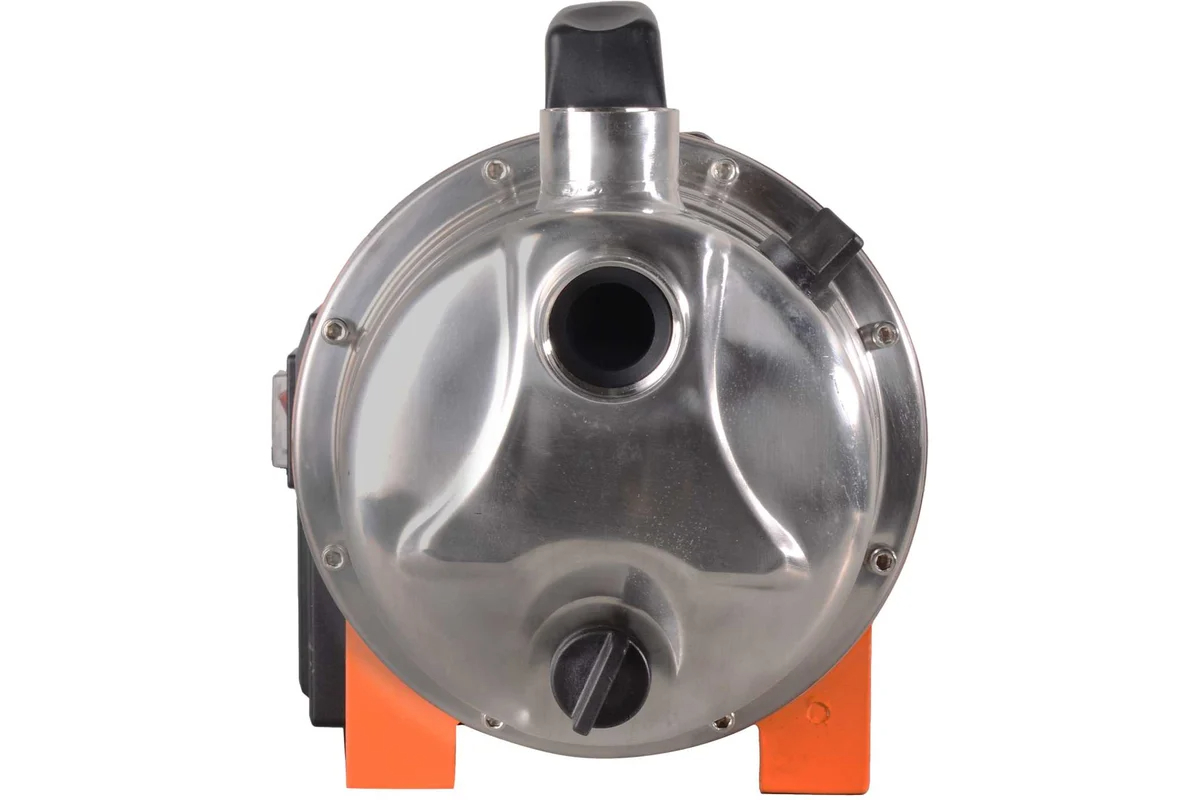 Диаметр выходного отверстия насоса равен 1 дюйму, что соответствует стандартным размерам шлангов и трубопроводов и облегчает подключение к системе водоснабжения. Корпус насосной части выполнен из нержавеющей стали, что гарантирует долговечность и устойчивость к коррозии даже при длительном использовании. Крыльчатка изготовлена из стеклонаполненного полиамида — композитного пластика, обладающего высокой прочностью и устойчивостью к износу.