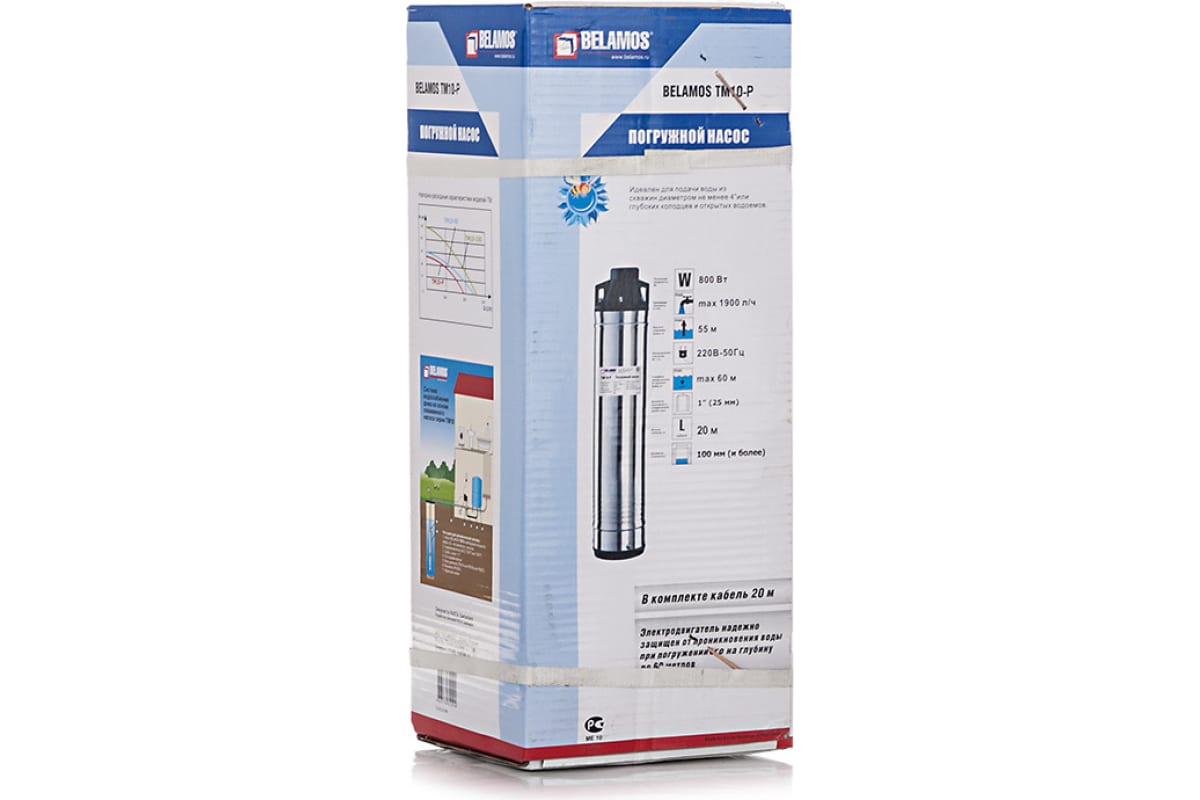 Насос скважинный вихревой Belamos ТМ10-P (31 л/мин, Н-55 м, D-4", каб.20 м)