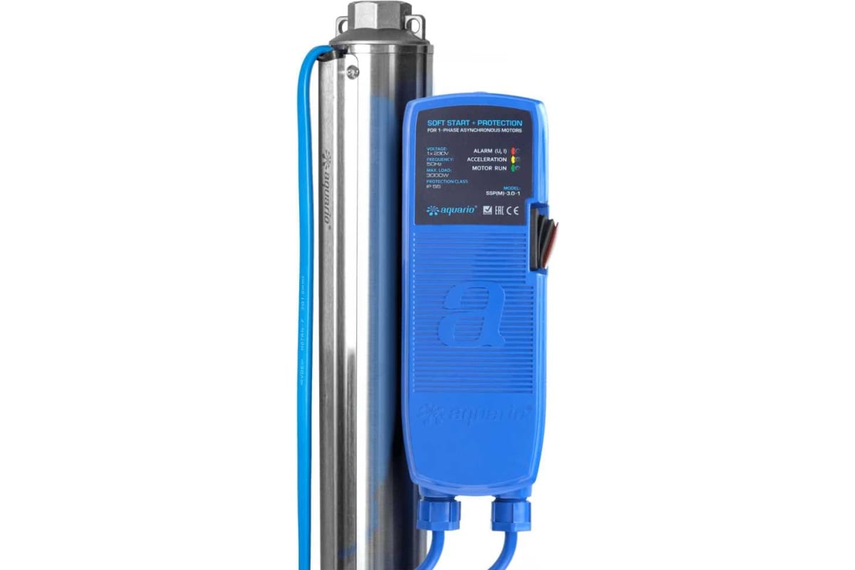 Насос скважинный Aquario ASP1E-100-75(P) с плавным пуском (встр.конд., каб.60м) предназначен для перекачивания чистой пресной холодной воды с нейтральным уровнем pH из скважин. С некоторыми ограничениями допускается подача воды из колодцев, открытых водоёмов и накопительных емкостей.