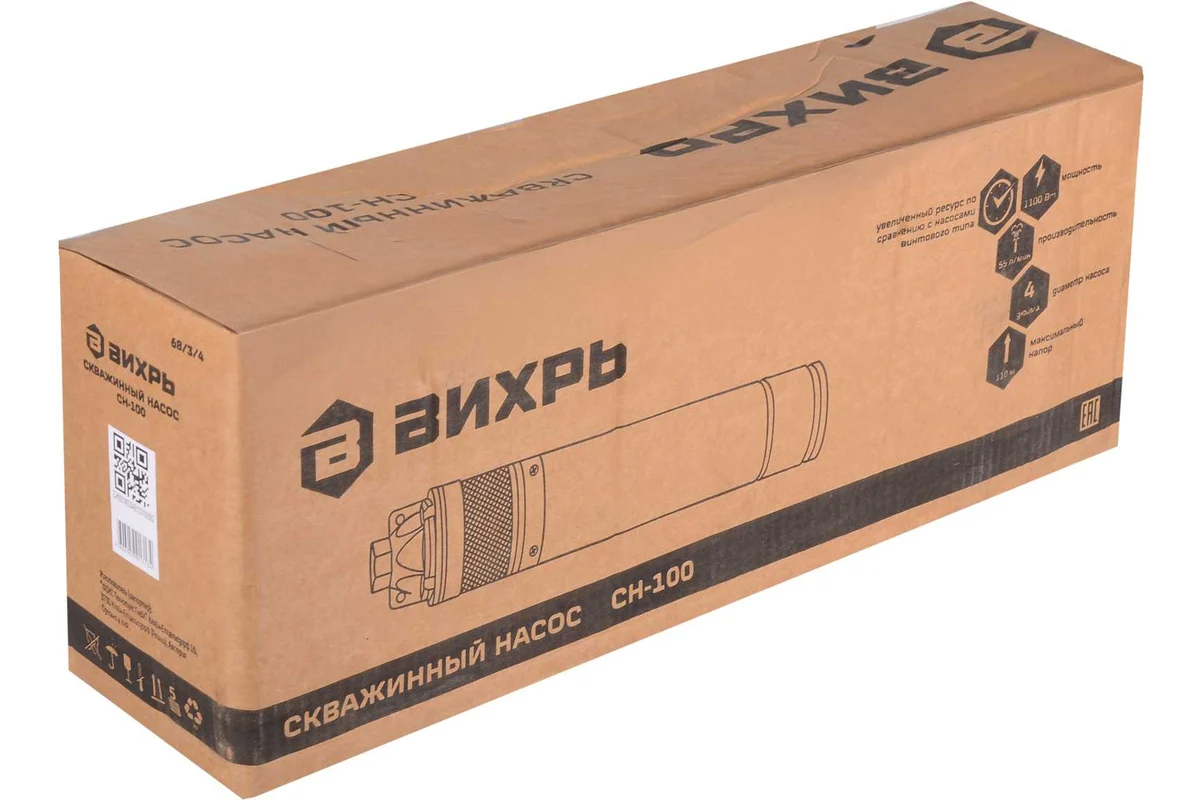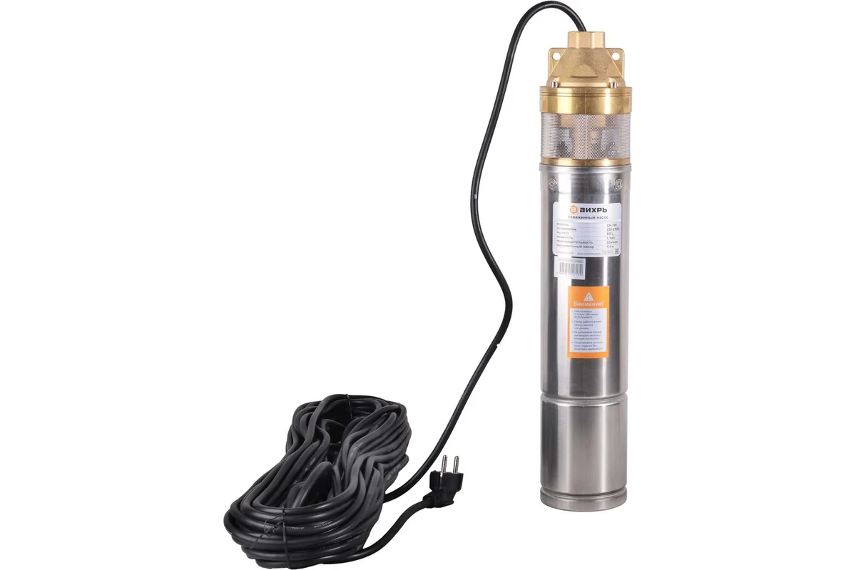 Скважинный насос Вихрь СН-100 — это мощное и производительное устройство, предназначенное для эффективного подъема воды из глубоких скважин. Мощность насоса составляет 1100 Вт, что позволяет ему создавать впечатляющий напор до 110 м, обеспечивая надежную работу даже в самых сложных условиях эксплуатации.