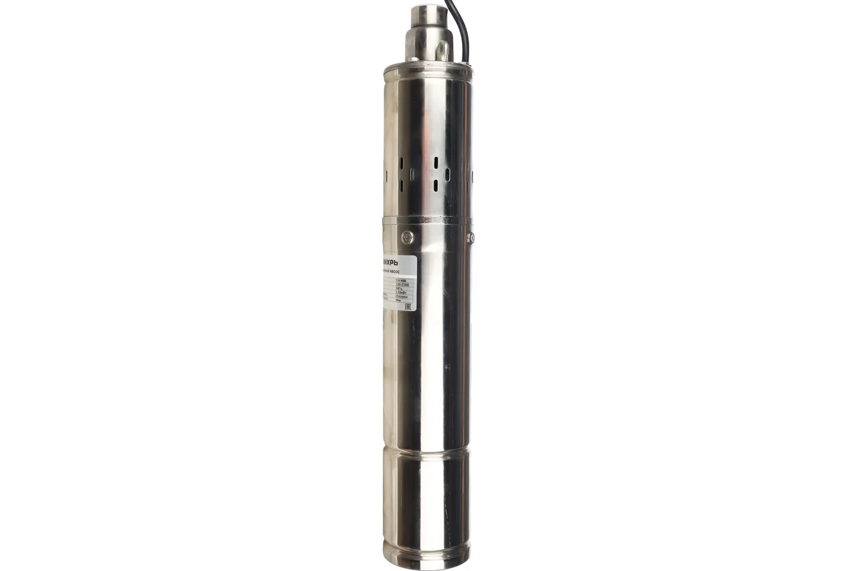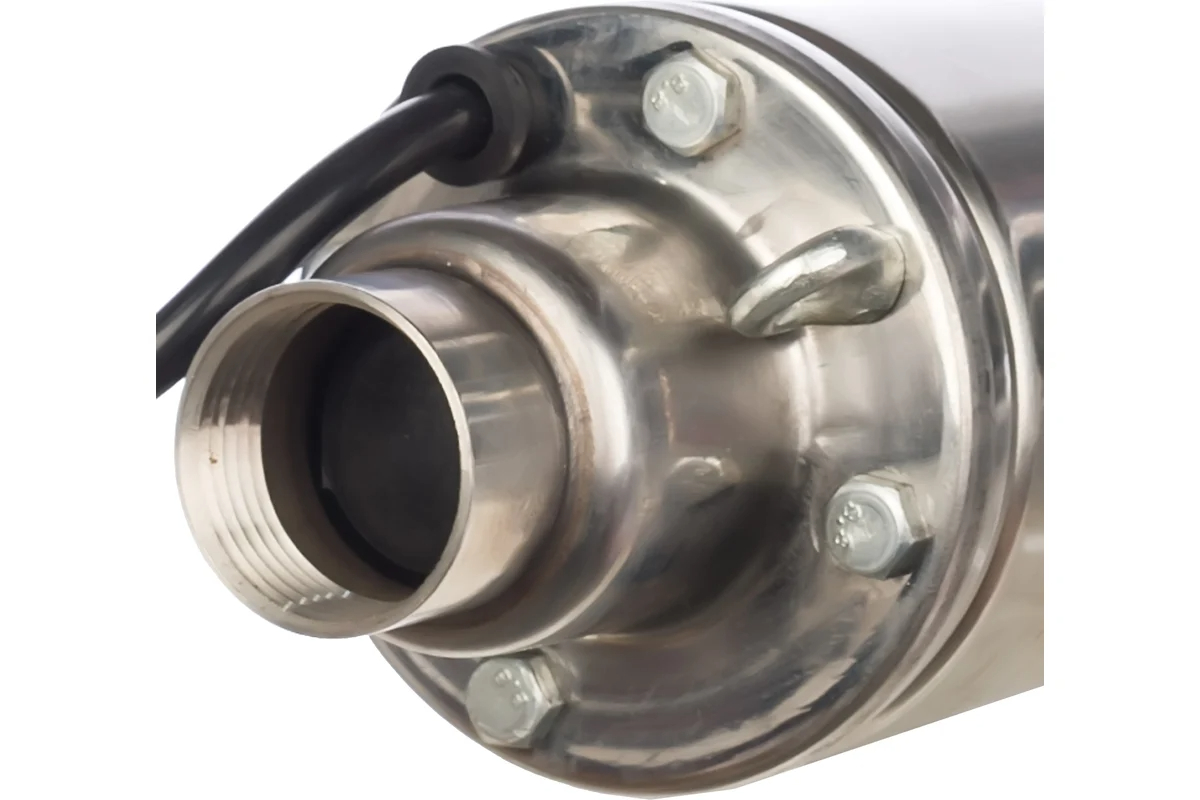 Скважинный насос оснащен верхним забором воды, что препятствует попаданию осадка и песка, исключает преждевременный выход из строя. Допустимое содержание песка в воде не должно превышать 50 г/м3. Крыльчатка насоса выполнена из хромированной стали, отличающейся повышенной стойкостью к коррозии и механическим повреждениям, что обеспечивает долговечность и надежность эксплуатации.