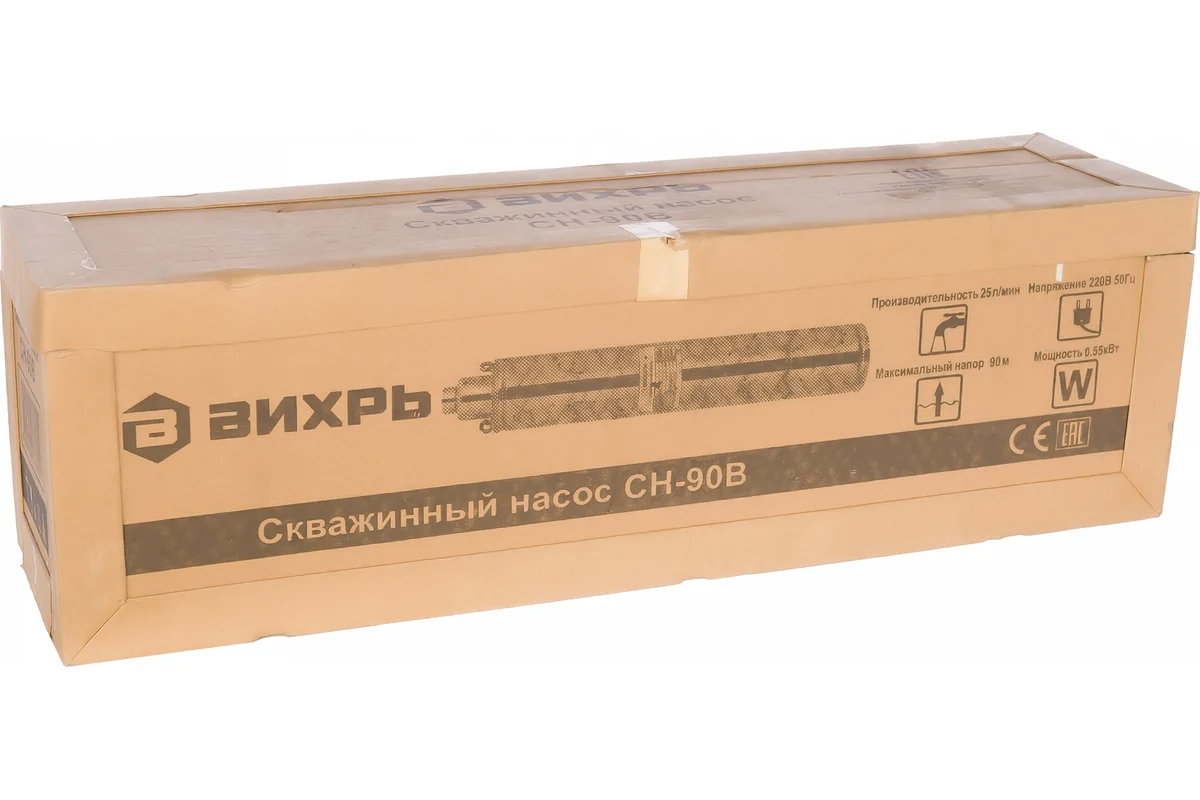 Скважинный насос Вихрь СН-90В – это надежное оборудование, которое используется для подъема воды из скважин и колодцев. Электрический двигатель имеет мощность в 550 Вт, что позволяет обеспечивать эффективную работу на глубине до 90 м. Максимальная производительность равна 25 л/мин, что делает его подходящим для использования как в бытовых, так и в небольших хозяйственных целях.