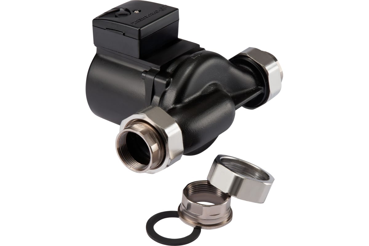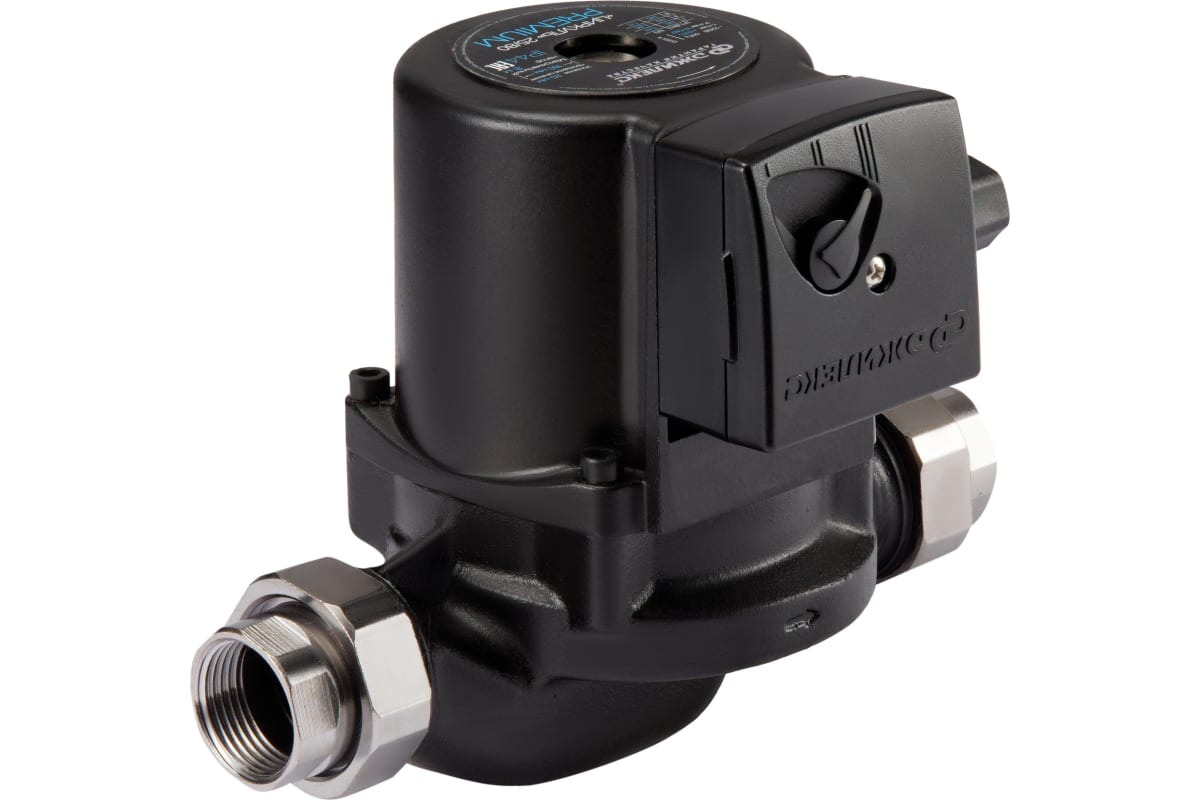 Присоединительный размер гаек — 1 дюйм (25мм). Максимальный напор достигает 4,2 метров водяного столба, а расход теплоносителя доходит до 55 л/мин.