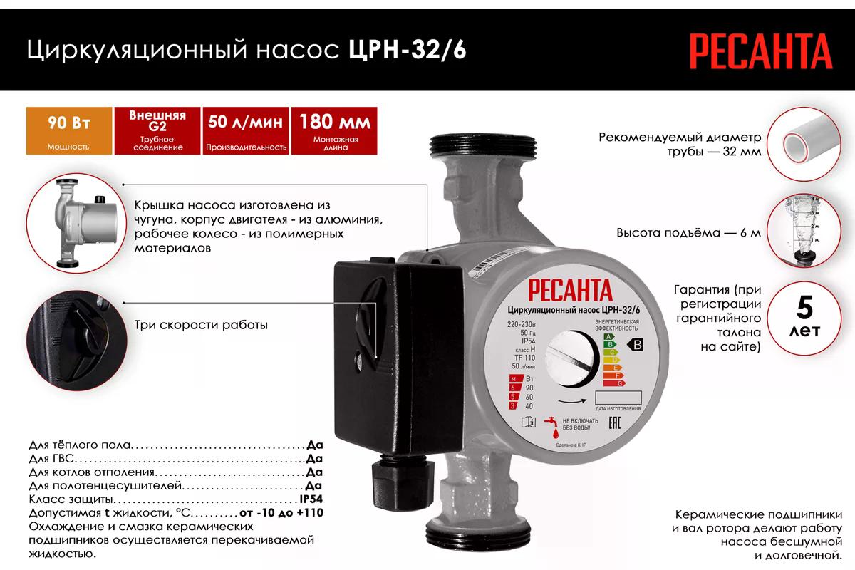 Насос циркуляционный Ресанта ЦРН-32/6 (77/7/4)