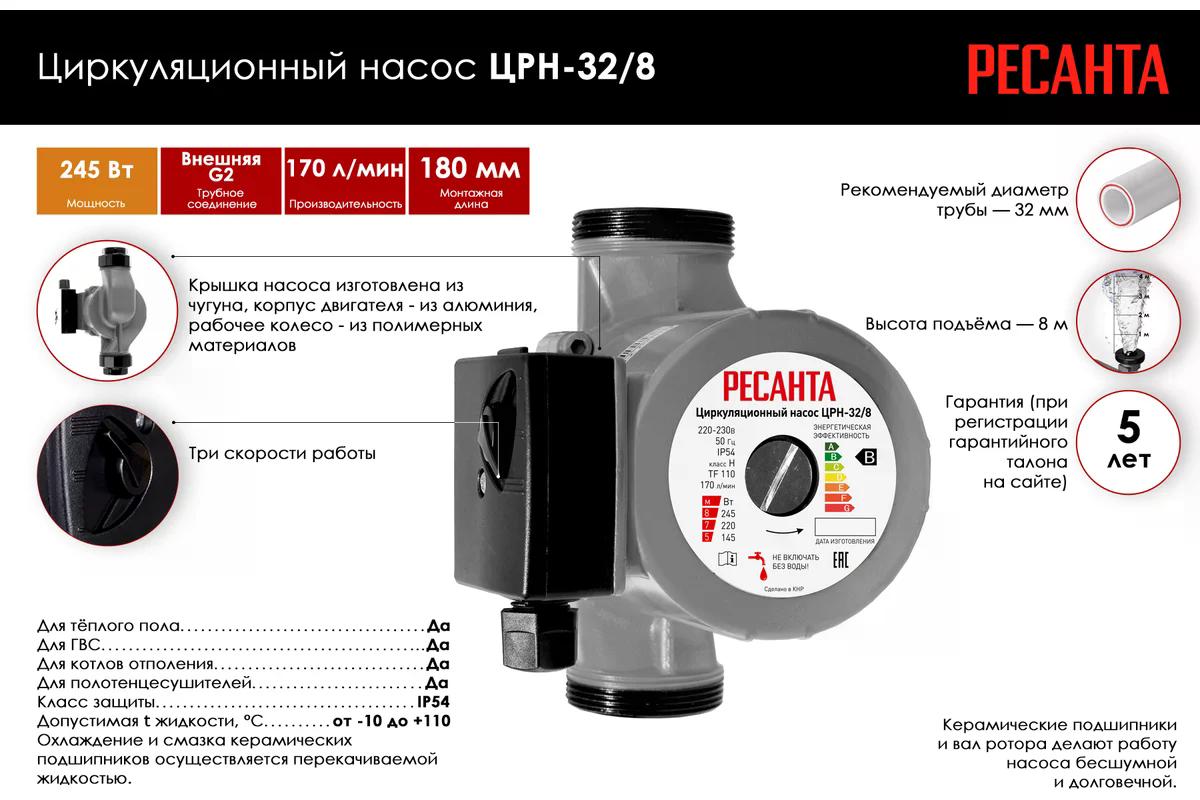 Насос циркуляционный Ресанта ЦРН-32/8 (77/7/5)